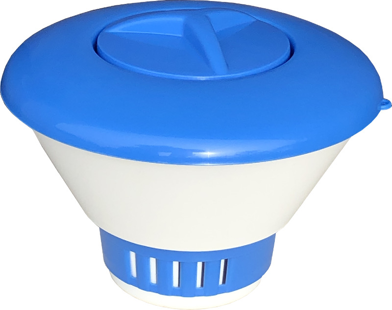 Clorador flutuante para pastilhas de cloro. Tem como função a alimentação de dosagens periódicas de cloro na água da piscina.