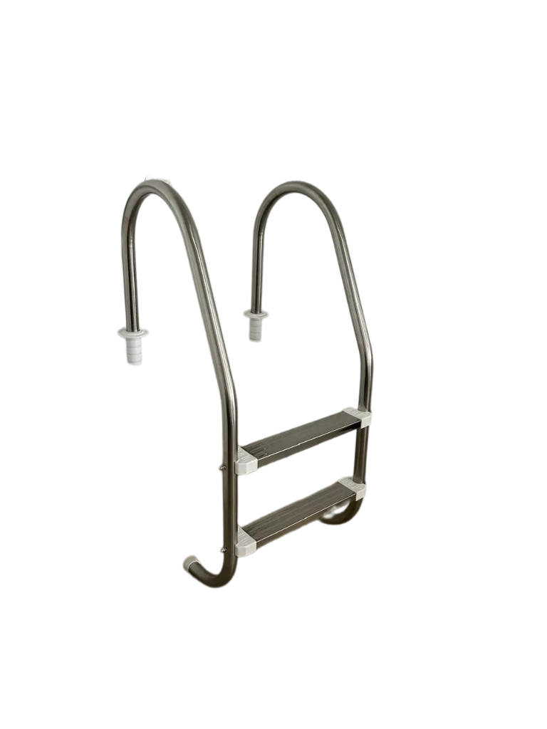 A escada 2 degraus inox é confeccionada com materiais de alta qualidade e resistência, possui corrimão em aço inox 304 polido e espelhado com diâmetro de 1 1/2″. Degraus em aço inox 304; Chumbadores injetados em plástico resistente; Ponteiras robustas em PVC flexível que amortecem o contato da escada na parede da sua piscina.