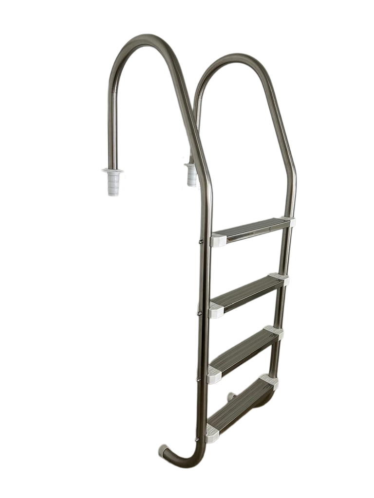 A escada 4 degraus inox é confeccionada com materiais de alta qualidade e resistência, possui corrimão em aço inox 304 polido e espelhado com diâmetro de 1 1/2″. Degraus em aço inox 304; Chumbadores injetados em plástico resistente; Ponteiras robustas em PVC flexível que amortecem o contato da escada na parede da sua piscina.