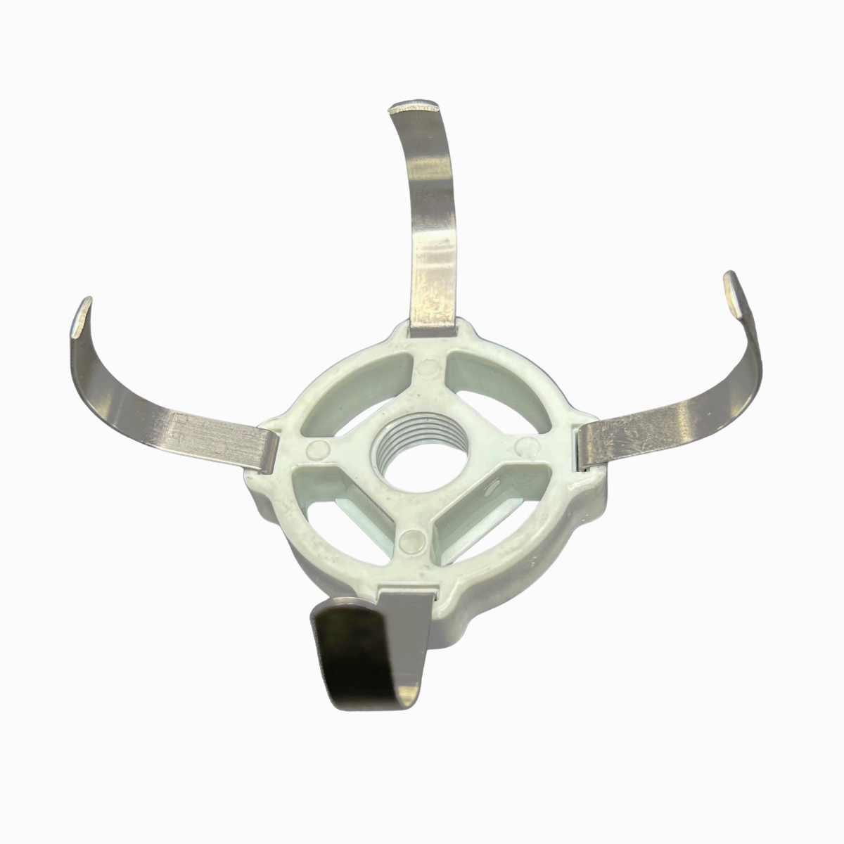Rosca interna de ½” e garras de inox para encaixe em nichos com diâmetro entre 7 e 12cm.